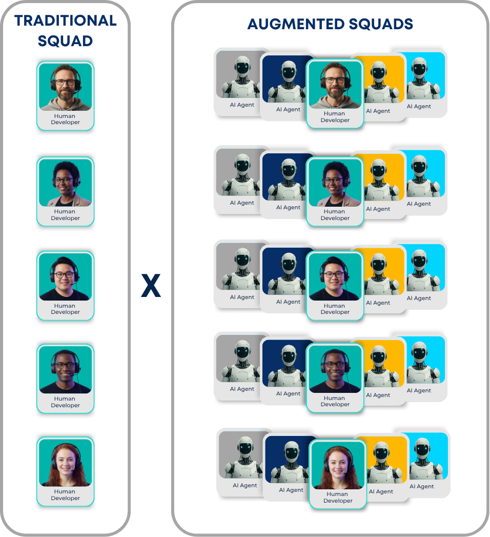 An Augmented Squad is a model where human engineers and autonomous AI agents work together as a single high-performance system.